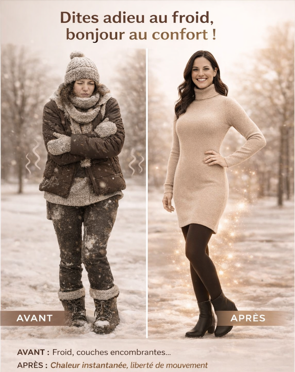 Sors en hiver sans jamais redouter le froid sur tes jambes. Profite de chaque sortie avec une sensation de chaleur réconfortante et un confort absolu. L’hiver ne t’empêche plus d’être à l’aise, confiante et stylée.